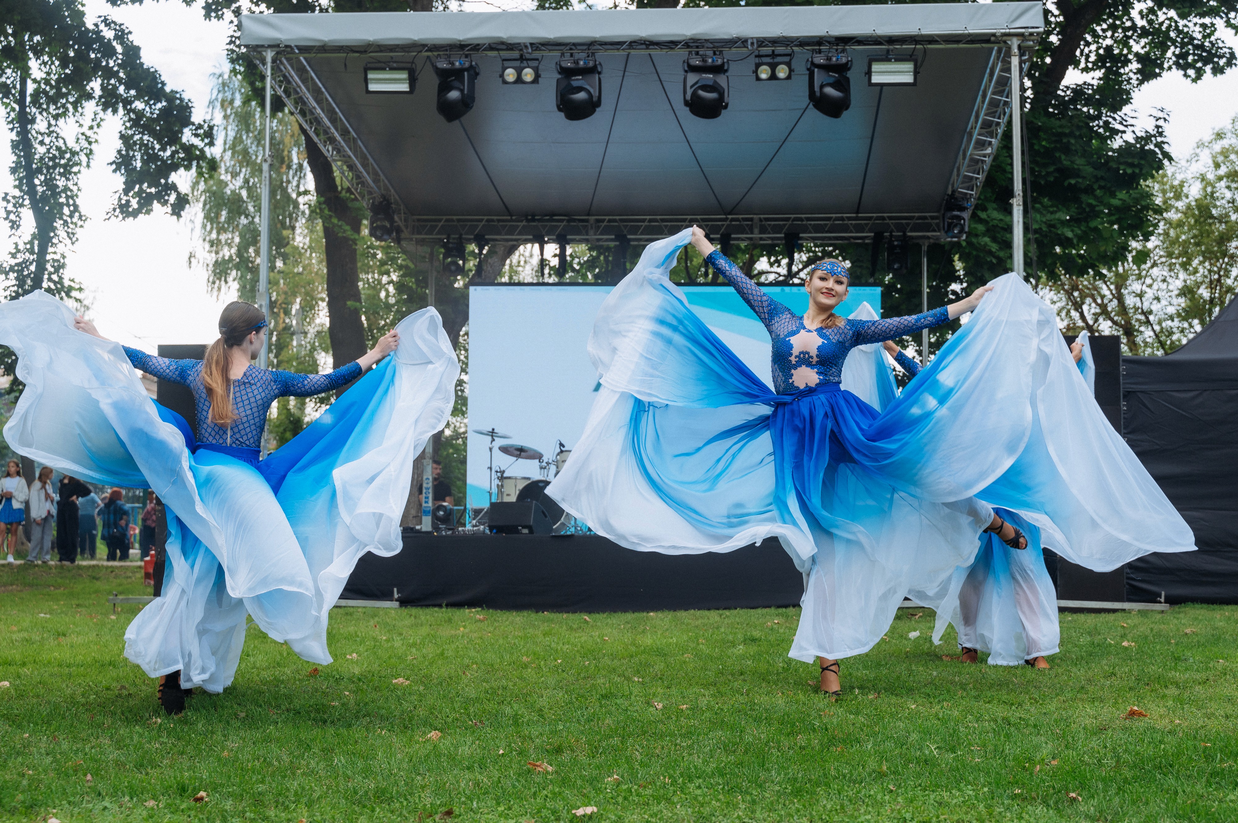 Монтаж площадки шел под проливным дождем, но в день праздника погода улучшилась, и все прошло гладко.