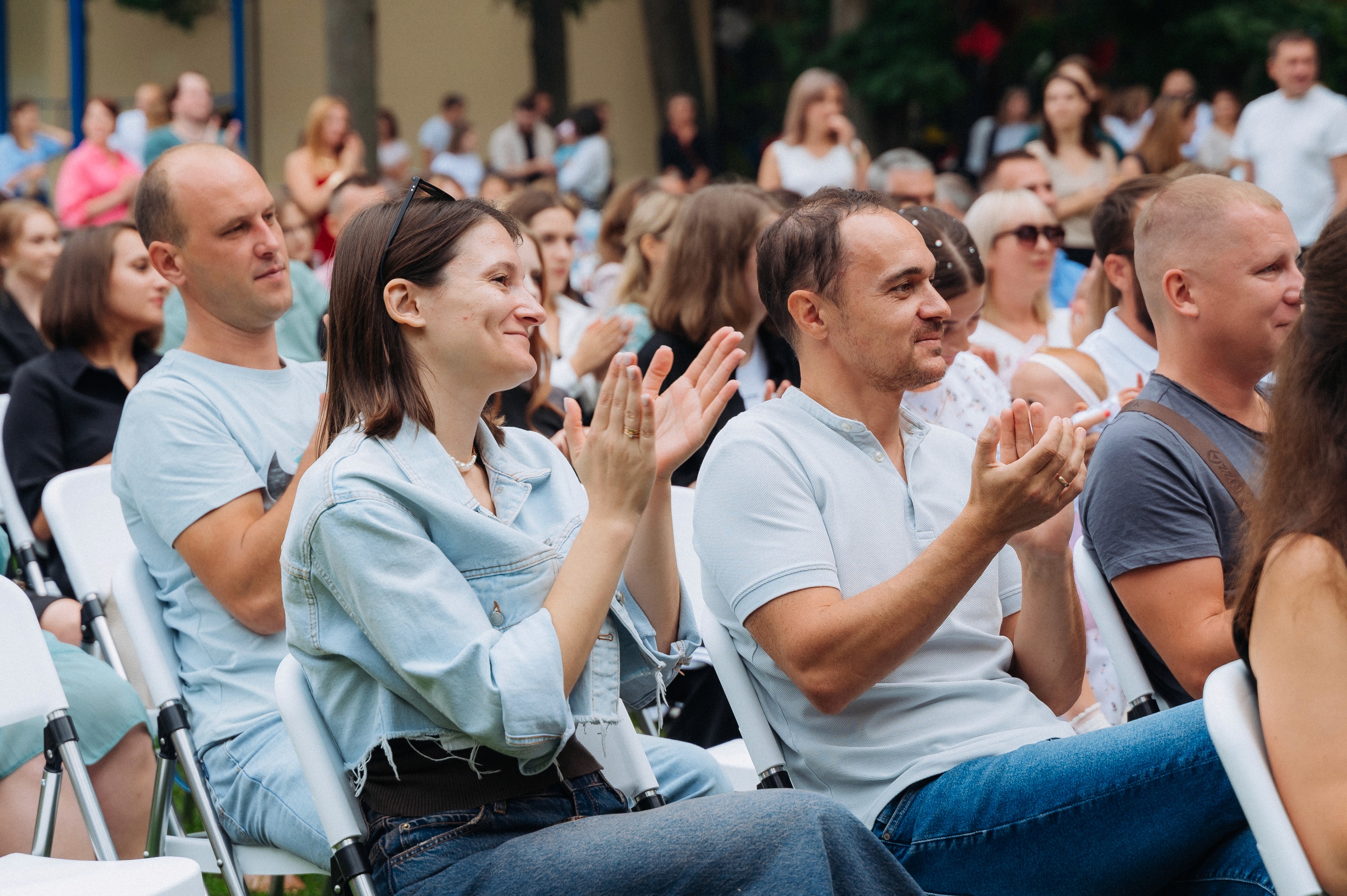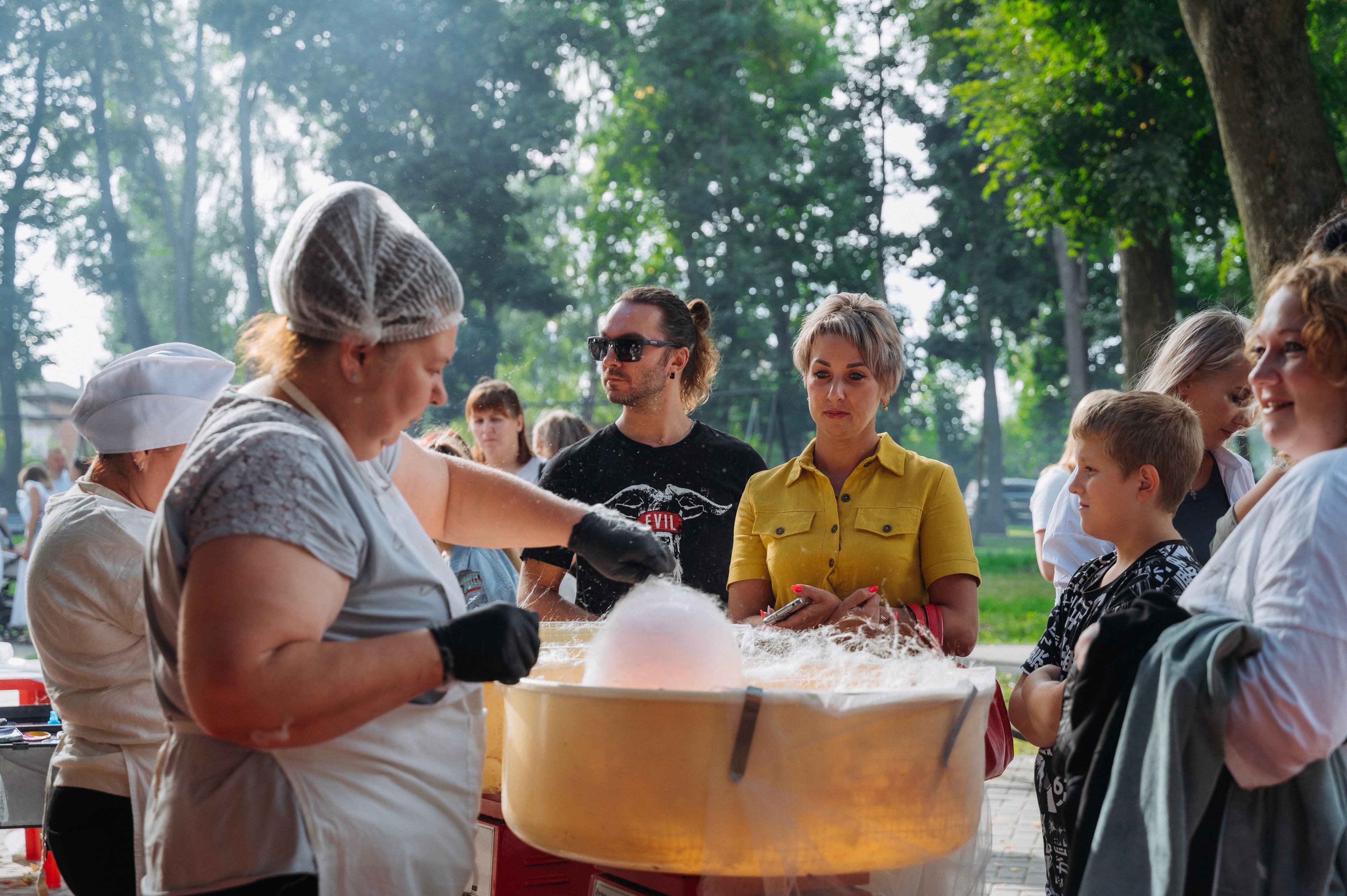 К празднику мы организовали зоны для всех гостей, чтобы каждый нашел активность по душе. Выделили отдельную площадку для детей, где прошли мастер-классы на разные темы и научное шоу. Также пригласили аниматоров и героев в ростовых куклах. Рядом на полянах разместили два больших детских батута в форме замка и корабля, а также станции с аквагримом и сладкой ватой.