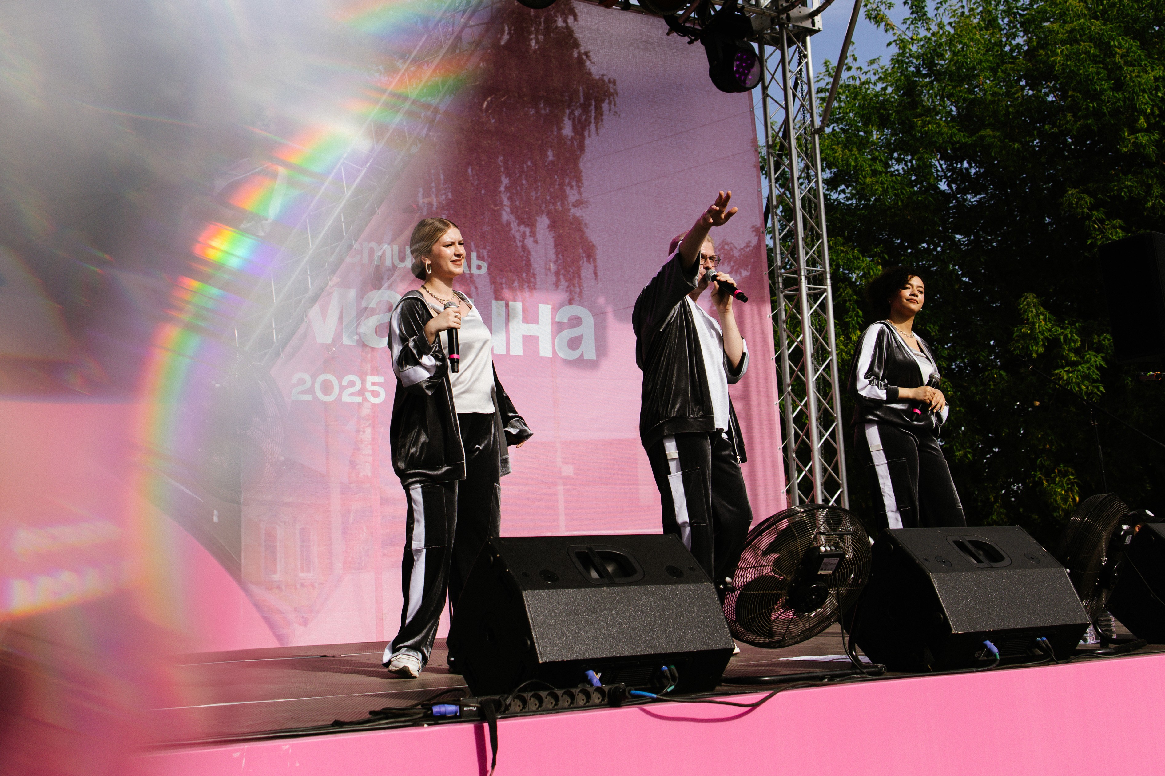 Малиновый цвет стал отправной точкой всей визуальной концепции. Он использовался в декоративных элементах, навигации, оформлении сцен и полиграфии. Все конструкции и объекты были заранее спроектированы и визуализированы, включая баннеры, патио и фотозоны.