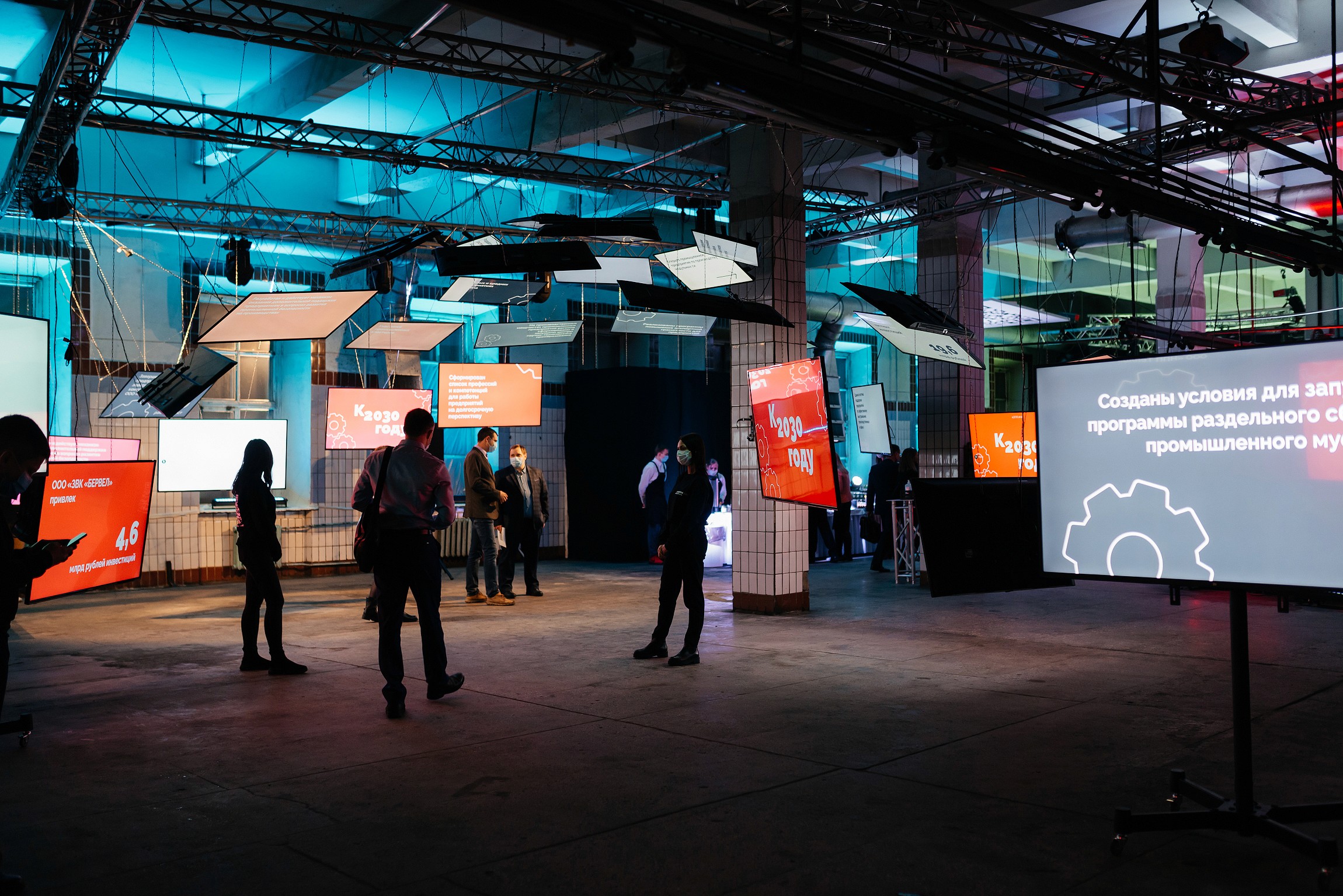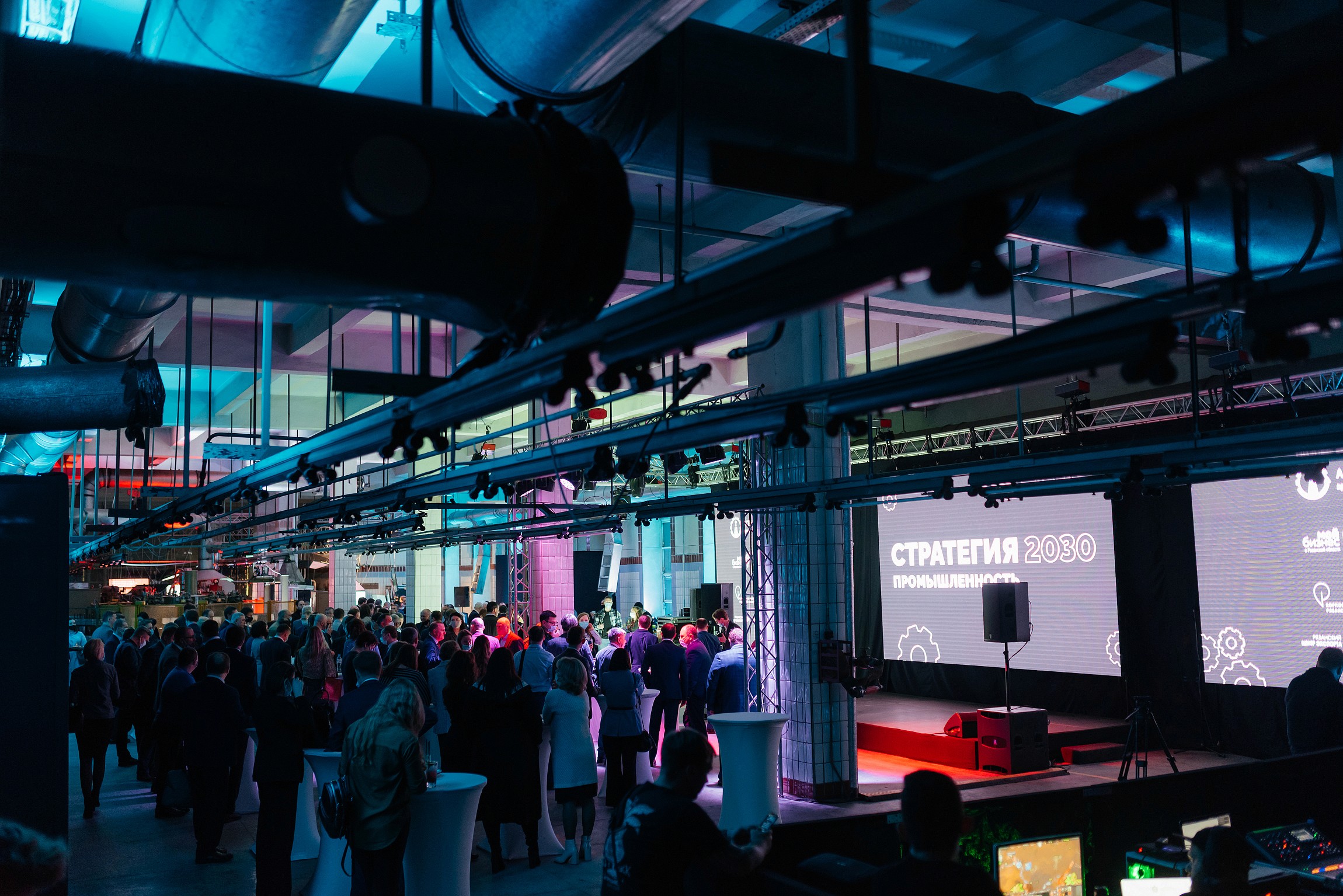 Мы превратили пустующий промышленный цех в современную площадку для делового события, обеспечив комфорт участников и выразительный визуальный эффект.