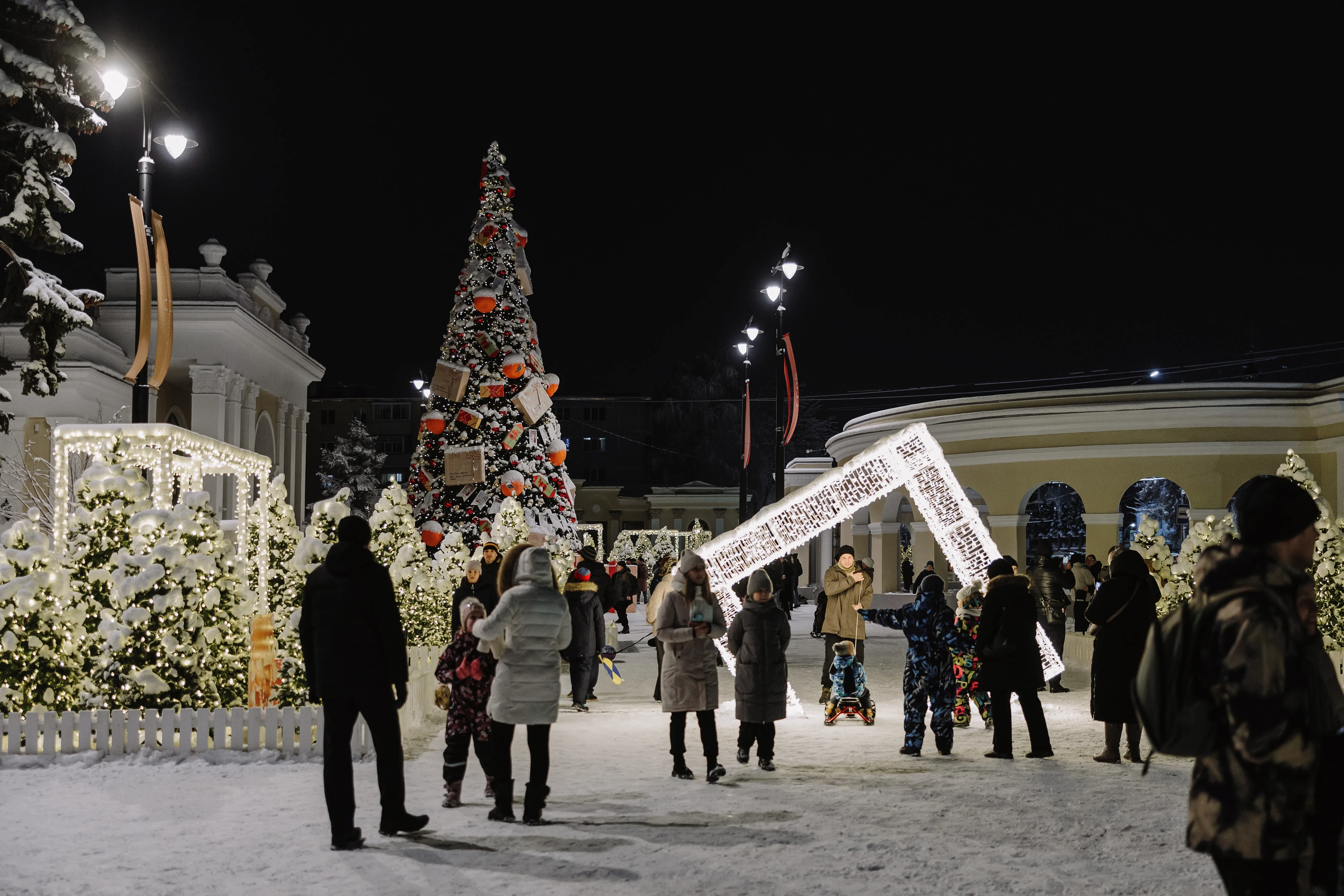 Торговый городок на зимние праздники превратился в атмосферное пространство, притягивающее горожан и туристов. Главная цель – предложить разные возможности для отдыха с семьёй и создать у гостей новогоднее настроение.